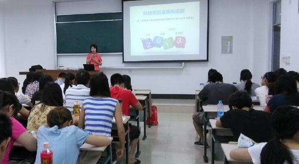 2013年7月2日上午,金沙9001cc 以诚为本市场营销系“大学生创新课题中期汇报交流大会”在1105成功召开。系主任李怡芳老师、学院科创中心王方方老师以及营销系各位老师出席了本次报告会,11级,12级市场营销系的全体同学认真聆听了全场报告。