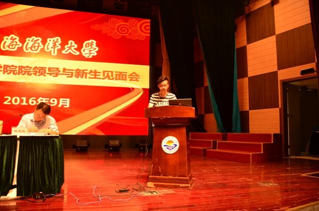 随后,我院院长平瑛发表讲话,欢迎在座的新生加入金沙9001cc 以诚为本,在这里将帮助大家完成从“材”变成“才”的蜕变。平院长从学校改革与发展的情况延伸到当今渔业的国际化程度,和外界的积极沟通,科技的运用,不禁令人心生向往。平院长着重介绍了如何树立新的“大学观”,从学习什么到怎么学,告诫新生要自主思考意识,掌握适合自己的学习方法,并学会担当。