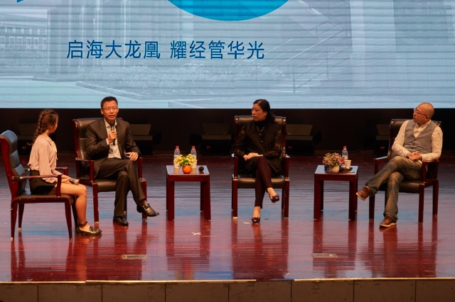 接下来的访谈分忆往昔、谈今朝、启未来三个模块,徐鹏起、陆玮、刘鹏三位校友回忆了曾经在海大的青葱岁月,难忘师生情,感恩母校的养育;在学业上和就业方面,三位校友告诉我们要胸怀理想,做好大学规划,奋斗的青春最美丽。三位校友与台下同学进行了互动,就同学们所关心的考公务员、考证书、就业实习问题作了耐心地解答,在座学生受益匪浅。