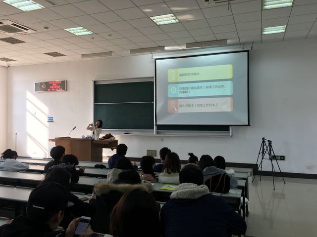 邱懿君老师毕业于上海戏剧学院广播电视学专业,国家二级心理咨询师,从事编剧工作多年,担任微电影《我们在一起》、《秋雁》、《舞动101》、《十九岁最后的一天》、《遇见》等优秀作品的编剧及导演。在培训中,邱老师分别从声画艺术、时空艺术、蒙太奇艺术三个方面向大家介绍了电影艺术的拍摄技巧。接着老师从心理咨询师的角度出发,给大家科普了有关认知疗法、森田疗法等心理学知识,讲述如何在电影中体现心理成长的过程。通过放映经典电影,老师从视听、陪体、背景、角度等多方面进行分析,让在座的同学们了解如何合理运用长短镜头进行拍摄,如何利用镜头传达意境等。最后,老师爽朗一笑,以一句“轻松一点,艺术让人成为人,所以要珍惜”结束今天的培训指导,并从亲身经验出发,告诉大家要以自信、满怀**与创造力的心态去拍摄心理微电影,表达自己。讲座在同学们的热烈掌声中结束。邱老师特意留出时间和同学们互动,为有疑问的同学答疑解惑,做专业指导,真诚的面对面交流让不少同学豁然开朗。