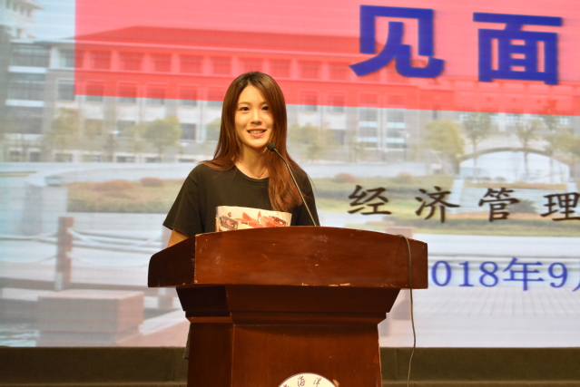 经管学院学生会主席姚思宇代表学长学姐向新生们送去热烈的欢迎与诚挚的祝福,并分享自己在校学习和生活的经验,希望新生学子能尽快适应大学生活,培养综合能力。新生代表成奕颖同学代表新生们向学姐、学长和老师们表达了感激之情。她表示,在大学中仍会刻苦学习,为美好的明天踏下坚实的一步。