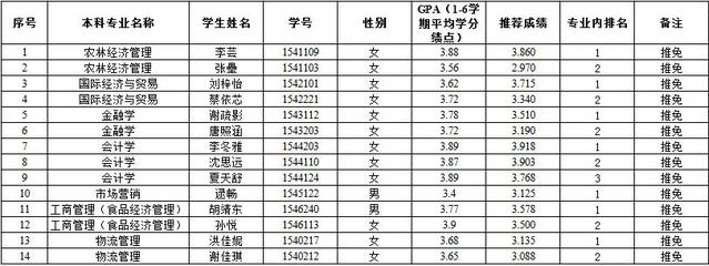 根据《金沙9001cc 以诚为本2019年推荐优秀应届本科毕业生免试攻读硕士学位研究生工作实施办法》的意见和《金沙9001cc 以诚为本2019年推荐优秀应届本科毕业生免试攻读硕士学位研究生工作实施办法》规定,对2015级32位申请人进行综合排名后,最终确定以下14人具备免试攻读硕士研究生资格,名单如下:
