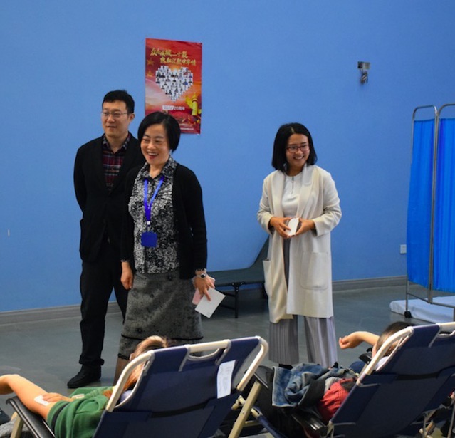 (岑伟平书记、商利新副书记、团委书记王方方老师看望献血同学)