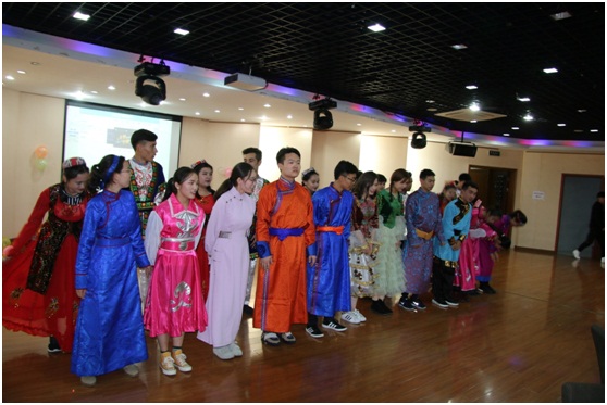 晚会节目丰富多彩,来自文法系学院的叶儿丹娜和茹菲娜同学为大家表演了节奏感超强的哈萨克族舞蹈《黑走马》;外国语学院的李洁同学为晚会带来诗朗诵《天上的草原》,诗词字字句句饱含了浓烈的情感,使大家不觉走进作者笔下的茫茫苍苍,广袤美丽的大草原。最后,晚会在大一新生表演的合唱《国家》歌曲“国是我的国,家是我的家;我爱我的国,我爱我的家……”中圆满结束。晚会结束后大家留影合念,验证了这美妙的时刻。