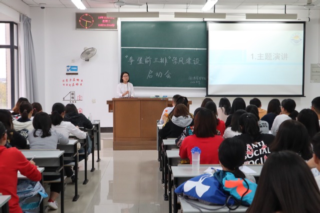 最后,王方方老师对班级学风建设工作提出要求,呼吁各班级应主动参与“争坐前三排”试点班的甄选。通过此次活动,增强了同学们的学习热情、提高了同学们的思想觉悟,起到了加强班级学风建设的良好效果。
