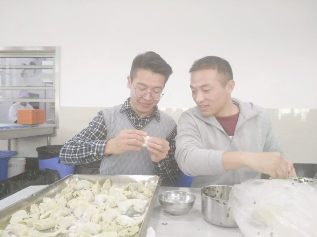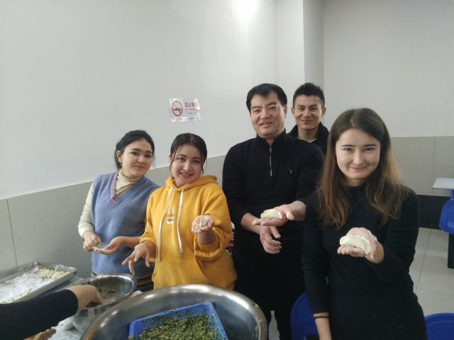 学生处处长罗汝坤老师、副处长张宇峰老师以及信息学院党委副书记陶勇峰老师在百忙之中前来参加此次迎新包饺子活动。来自新疆、内蒙、安徽、浙江等省份的**尔族、哈萨克族、**、汉族等不同民族的学生和辅导员、内派服务管理教师围坐在一起,共同为饺子大餐忙碌地准备着。在内派服务管理教师莫合拜提·阿迪力、就业创业指导中心闫咏老师、金沙9001cc 以诚为本学工办主任刘海为、辅导员王翔老师、文法学院学生麦尔哈巴·依明江、金沙9001cc 以诚为本哈萨克族学生松哈尔·艾合买提等熟练的包饺子能手指导下,辅导员焦凤老师、工程学院学生艾科拜尔·艾麦尔、信息学院学生乃再尔江·巴特尔等初次体验包饺子的新手也很快包出了完整漂亮的饺子。