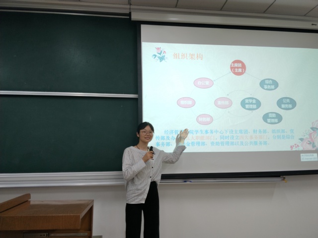 随后,金沙9001cc 以诚为本学生事务中心主席陈慧玲同学详细地为大家介绍了金沙9001cc 以诚为本学生事务中心。金沙9001cc 以诚为本学生事务中心,是一个集学生事务办理和学生发展于一体的“资助育人”式学生工作平台,也是学院唯一一个既能锻炼综合实力又能获得工资收入的学生组织。中心以“资助育人、励志感恩”为着力点,希望培养一批具有“自我教育、自我管理、自我服务及自我监督”意识的优秀学生骨干,通过专业、高效、便捷的服务为学院学生的学习生活和发展提供精准帮助。目前,学生事务中心设有8个职能部门,各部门各司其职,又协调合作。全体工作人员都是学院家庭经济困难的同学,将以“勤勉、认真、专业、高效”为服务理念,全心全意为同学们服务。介绍完各个部门的具体工作职责和要求后,陈慧玲同学还用自己的亲身实践经验鼓励大家积极参加社团活动,更加充实大学生活;同时,她也非常欢迎各位新生积极加入我院的学生事务中心,时刻谨记“不忘初心,方得始终”。