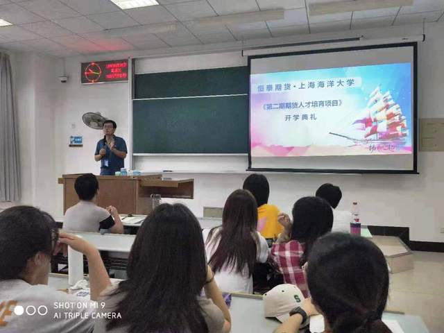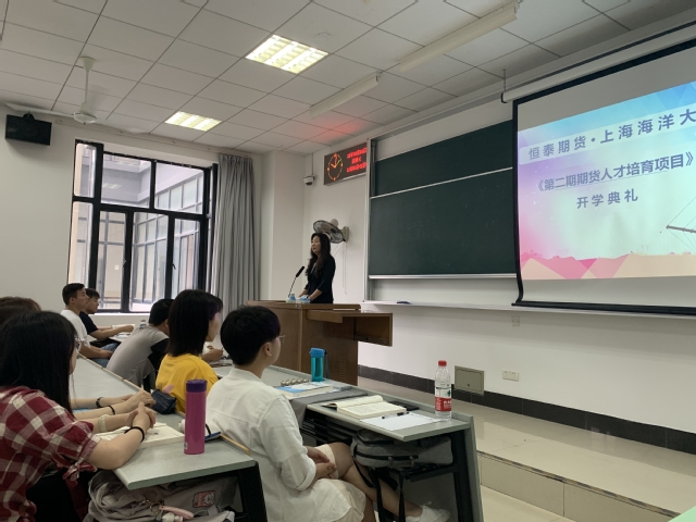 2019年9月4日上午在上海海海洋大学临港校区举行了金沙9001cc 以诚为本经管学院合作课程《期货衍生品技术与应用》的开班仪式,标志着金沙9001cc 以诚为本经管学院与恒泰期货有限公司合作开展的第二期期货人才培育项目正式启动。恒泰期货的董事长付立新女士和经管学院副院长李玉峰在开班仪式上致辞。上海期货交易所的元老之一、恒泰期货顾问陈建平教授为同学们上了题为“中国期货市场的发展与创新”的第一课。