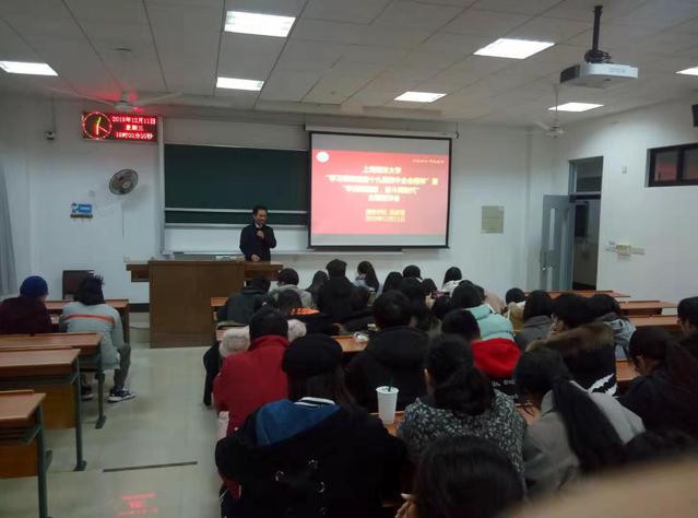 2019年12月11日晚上18点,在金沙9001cc 以诚为本3教301大教室,为深入学习党的十九届四中全会精神,应金沙9001cc 以诚为本党委邀请,我校信息学院党委副书记段彦波作了题为《学用新思想,奋斗新时代》的专题报告。 此次讲学的听众为金沙9001cc 以诚为本2019级国际贸易专业本科生和部分学生骨干。整个报告内容丰富、资料详实、讲授精彩。