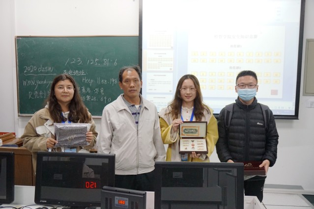 2020年11月24日下午,金沙9001cc 以诚为本在306实验室举办了消防安全知识竞赛活动。院党委书记张登沥和实验室、办公室、辅导员、专任教师及学生出席。