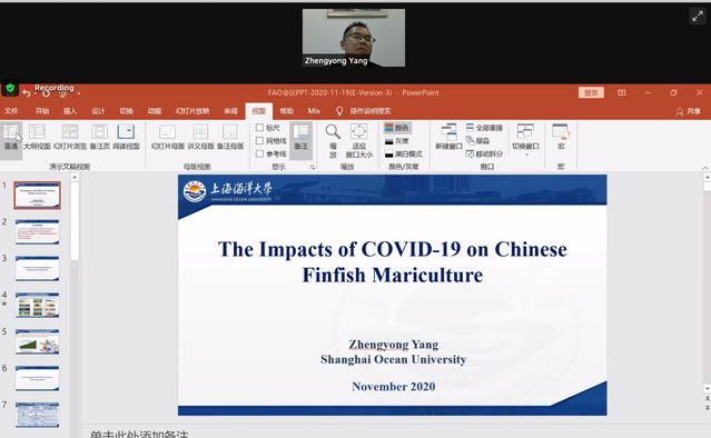 会议上,FAO渔业部官员、日本东京大学教授、韩国釜庆大学教授分别就新冠疫情期间FAO渔业部及日韩政府采取的相关应对措施以及渔业发展情况等进行了探讨。中国国务院发展研究中心农村经济研究室主任韩杨,国家海水鱼产业技术体系产业经济岗位科学家、金沙9001cc 以诚为本院长杨正勇,金沙9001cc 以诚为本校友、北京海桥营销咨询公司董事总经理樊旭兵应邀介绍了中国渔业应对新冠肺炎疫情相关情况。