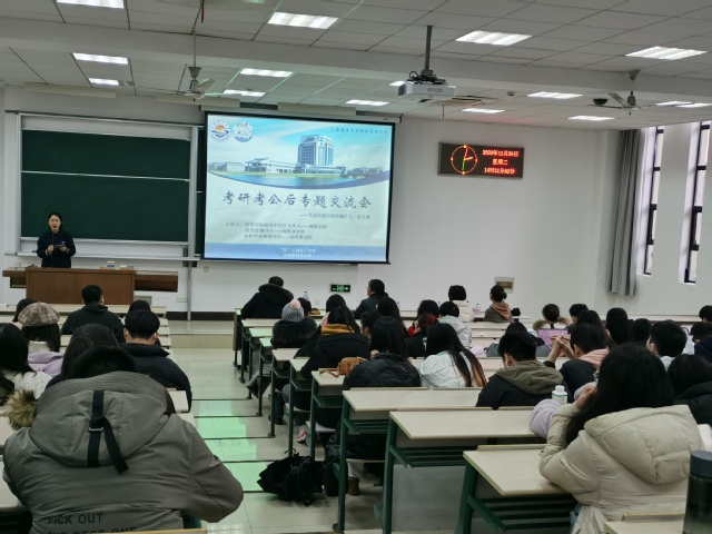 柳萍介绍了考研复试方法、调剂方法以及相关注意事项,并向学生们讲解了学院专业设置、历年研究生报考人数和研究生培养方向等情况。韩照坤介绍了研究生的学习、生活和就业情况,提醒学生要清楚地认识到读研对于就业的影响,明确自己的人生规划,以结果为导向进行职业规划。赵玲蓉介绍了基层项目就业情况,包括西部计划、三支一扶、大学生村官(选调生)、特岗教师和农业技术推广服务特设岗位计划,对春招进行了详细的讲解,引导学生发现更多就业渠道,同时强调要珍惜应届毕业生身份,准确合理把握每一次求职机会。