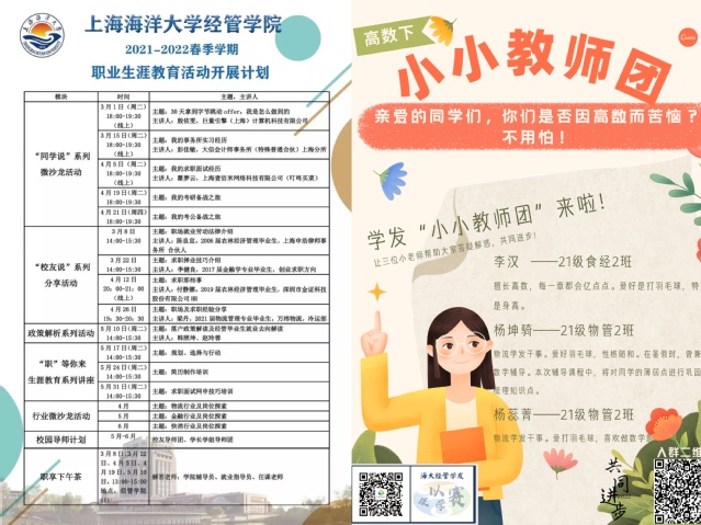 “怎么样?最近线上实习影响大不大?有需要老师帮助的地方吗?”“学校将于3月底举办2022届毕业生春季综合类网络招聘会,大家可以进一步润色自己的简历,增加就业竞争力。”负责毕业班的辅导员蔡晓芬、韩照坤一手拿着毕业生登记表,一边跟学生打着电话,及时了解每一位毕业生的就业现状,并给予针对性的就业指导。疫情以来,就业不停歇,就业指导老师赵玲蓉迅速组织经心就业工作室应势制作《经管人就业与职业指导手册》,涵盖简历指导、经验分享、求职指导、专业认识、职业认知、榜样引领六个板块的内容,全方位帮助毕业生尽快融入职场,引导在校生尽早明确职业方向。在宿舍走访中,了解到部分同学在线学习效果受影响,高数课程学习难度增大,学习发展中心指导老师汪静联合各年级组组长策划成立“学发·小小教师团”,自发在云端进行答疑辅导,发挥朋辈引领作用,全方位促进学业能级提质增效。