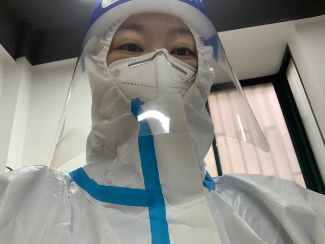 次日天气不是很好,蒙蒙细雨下个不停。早上七点,刘懿莹就赶到居委会等待上岗,她被安排配合做核酸的医生,负责扫描健康云登记码以及维护检测队伍秩序。在实际工作中遇到了很多问题:群采的时候最后一个居民忘记把条形码给医生,精准定位查找到人追回条形码;居民没有重新申请登记码,主动帮助申请;扫描机读取登记码失败,查找原因调整手机屏幕合适亮度;排队中大家没有保持安全距离,反复提醒有序引导……防护服包裹性强,呼出的热气让防护罩起了雾,再加上飘过来的小雨,看东西模模糊糊的,让工作更加困难,她没有一句怨言,始终微笑待人,温柔耐心的坚守在服务岗位上。