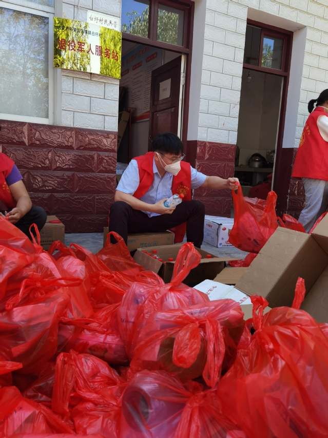 张贻福在整理要发放的民生物资