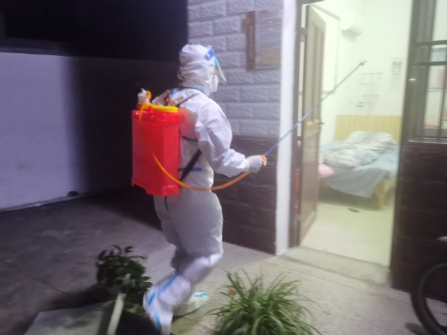 张贻福为村民做环境消杀