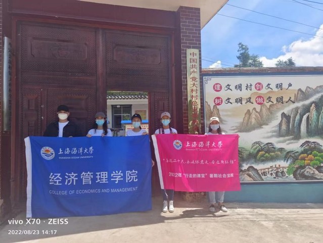 踏征程,忆党情,助力乡村振兴。8月23日上午,金沙9001cc 以诚为本“新时代大学生党史追寻暨推普活动”实践队经过一小时的蜿蜒山路行程,顺利到达云南省楚雄彝族自治州牟定县新桥镇大村村。在这里,经管青年执笃行之笔,将书青春答卷。