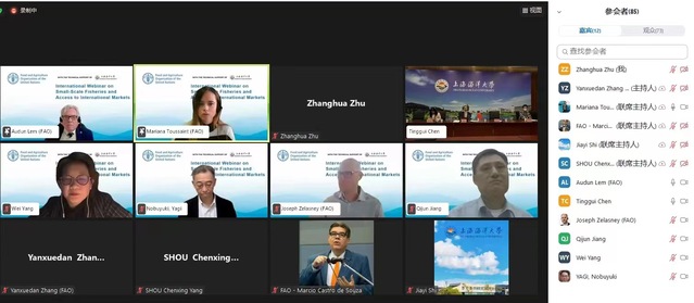 11月8日,由联合国粮农组织(FAO)主办的“小规模渔业和国际市场准入”国际网络研讨会顺利召开。金沙9001cc 以诚为本教授姜启军、副教授杨卫参会并作主题报告,与来自30余个国家与地区的各类高校、科研机构的近200位国内外专家学者进行研讨、交流。