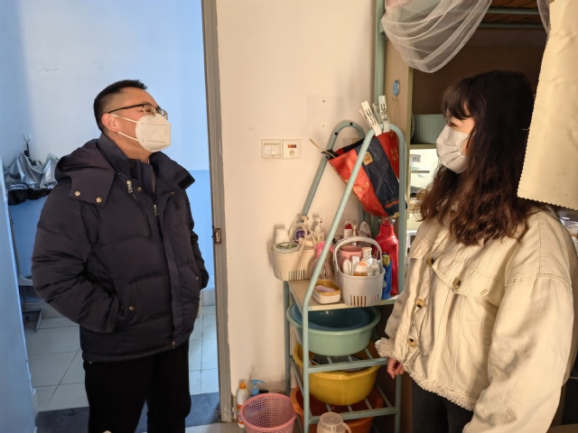 在学生宿舍,杨正勇一行与留校学生亲切交谈,详细了解在校学习、生活等情况,并送上“新春暖心礼包”。走访中,杨正勇勉励学生要珍惜时光、合理安排假期生活,做到劳逸结合,做好个人防护、注意假期安全,经常联系问候家人亲友、与学院老师保持每日沟通,并预祝同学们度过一个欢乐充实、平安祥和的春节。在得知留校本科毕业生正在找工作时,杨正勇鼓励学生要积极投身就业实践,学院将一对一开展就业指导服务工作,为学生高质量就业保驾护航。