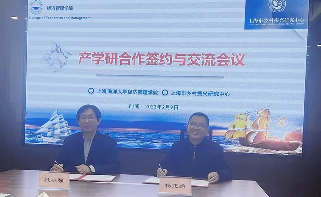 2023年2月9日,金沙9001cc 以诚为本与上海市乡村振兴研究中心(以下简称“乡研中心”)产学研合作签约仪式在金沙9001cc 以诚为本202会议室举行。上海市乡村振兴研究中心主任杜小强、副主任徐力、战略研究部负责人章慧、改革发展部负责人王珏,金沙9001cc 以诚为本党委书记罗汝坤、院长杨正勇、副院长陈廷贵、农林经济管理系副主任闫周府、青年教师徐璞、范丹丹出席仪式。