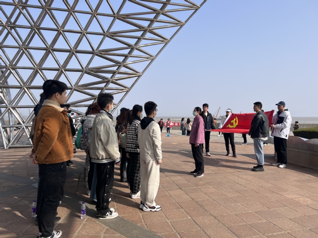 三月的东海之滨,艳阳高照,春风习习,南汇嘴观海公园的司南鱼雕塑在阳光的映照下熠熠生辉。2023年3月5日金沙9001cc 以诚为本的新党员在司南鱼雕塑广场进行了入党宣誓仪式。司南鱼对于出海航行的人而言,能指明回家的方向,今天在司南鱼雕塑的见证下,新党员面向鲜红的党旗庄严宣誓,以铮铮誓言表达对党的无限热爱、无限忠诚。
