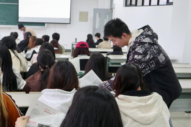 “经梦”二十大宣讲团成员黄丽环、张逸宁分别带来示范课《科技引领乡村振兴——微型农机助力农业现代化》《快递进村加速度,服务群众助振兴》,结合学科特色分享党的二十大精神,鼓励青年努力提升科学文化本领,加强理论学习与科技创新,将理论应用于实践,为乡村振兴贡献自己的青春力量。会上,蔡霞对学员进行新闻撰写专题培训,包括文字撰写、语法使用、新闻摄影等,通过列举详实案例,提升新闻素养与摄影技术。蔡霞鼓励同学们积极创作参与校报投稿,用善于发现美的眼睛描绘校园点滴生活。