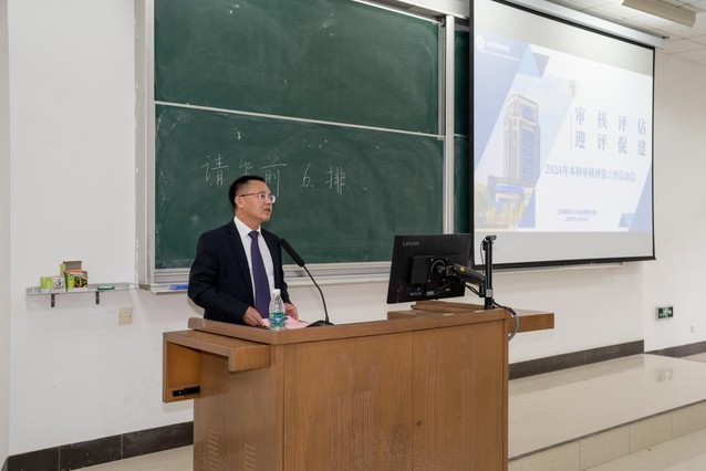 副院长陈廷贵对新一轮本科教育教学审核评估工作进行了要点解读,通过梳理上一轮审核评估的弱势及不足,明确了本轮教学评估工作的着力点。他详细阐述了高等教育质量保障体系建设的背景,并讲解了审核评估方案的设计及指标体系的指导方向、主要特征和实施要点。