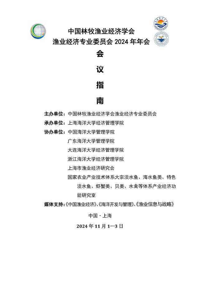 中国林牧渔业经济学会渔业经济专业委员会2024年年会会议指南