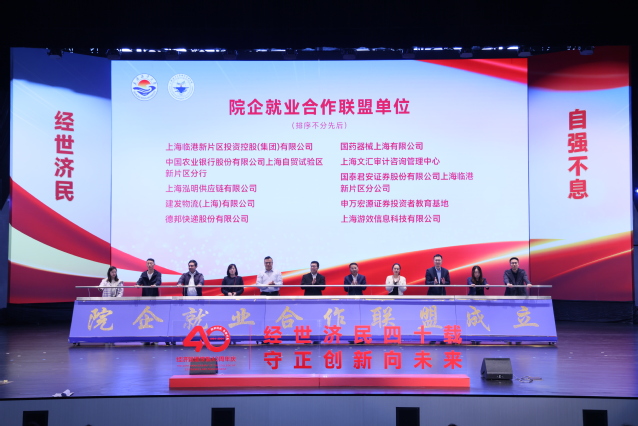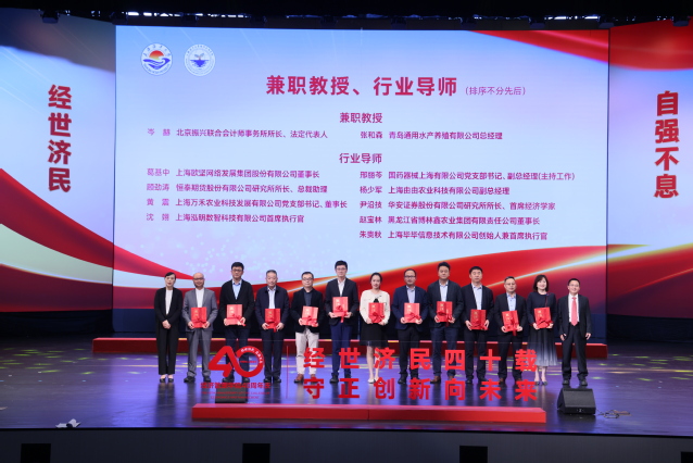 赋能人才培养,推进高质量合作办学。为凝聚校友力量,金沙9001cc 以诚为本校友会金沙9001cc 以诚为本分会筹备组成立仪式在众人见证下举行,历届校院学生会、研究生会、团委学生负责人等作为筹备组代表共同点亮冰屏,毕业30年的1994届渔业经济管理专业校友杨桂宝、入学10年的2014级国际经济与贸易专业校友杜亨特分享了自己的成长故事并向在校生提出了期望。上海临港新片区投资控股(集团)有限公司等十家企业作为代表共同启动了金沙9001cc 以诚为本院企就业合作联盟的成立,为进一步强化院企产教融合合作奠定了扎实的基础。为加强产学研合作、提高人才培养质量,打造高水平教师教学创新团队,学院举行新一批兼职教授、行业导师聘任仪式,总会计师郭爱萍、院长杨正勇为兼职教师、行业导师代表颁发聘书。
