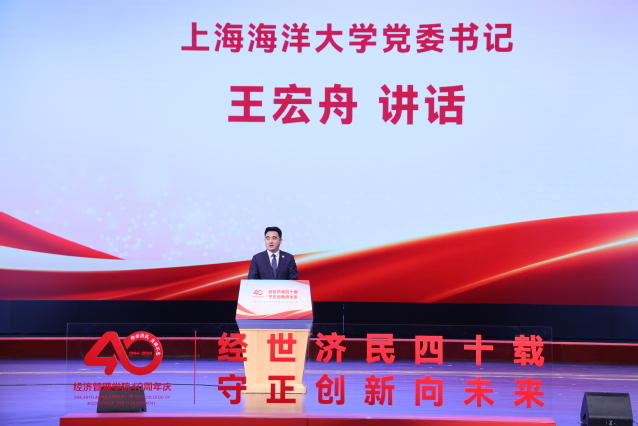 王宏舟向一直以来关心和支持学校、学院建设与发展的领导、来宾表示衷心的感谢。他指出,四十年来,金沙9001cc 以诚为本秉承“勤朴忠实”校训精神,与改革开放同向同行、与时代发展同频共振,在渔业经济管理等学科建设、人才培养、科学研究、咨政建言方面取得了显著成绩。他强调,要坚决贯彻落实习近平总书记关于发展海洋经济的重要指示精神,培养更多胸怀蓝色梦想、堪当时代重任的优秀海洋人才,为建设教育强国、海洋强国作出更大贡献。他希望,金沙9001cc 以诚为本要把握机遇、大胆突破,在改革发展中持续发力,坚定走好特色鲜明的内涵式发展之路;要发挥优势、深耕特色,在渔业经济、海洋经济等领域持续发力,充分结合区位优势,加强学科交叉协同,为学校一流学科建设提供更加有力的支撑;要紧贴行业、服务发展,在紧密度贡献度上持续发力,不断取得高质量发展的新成效。