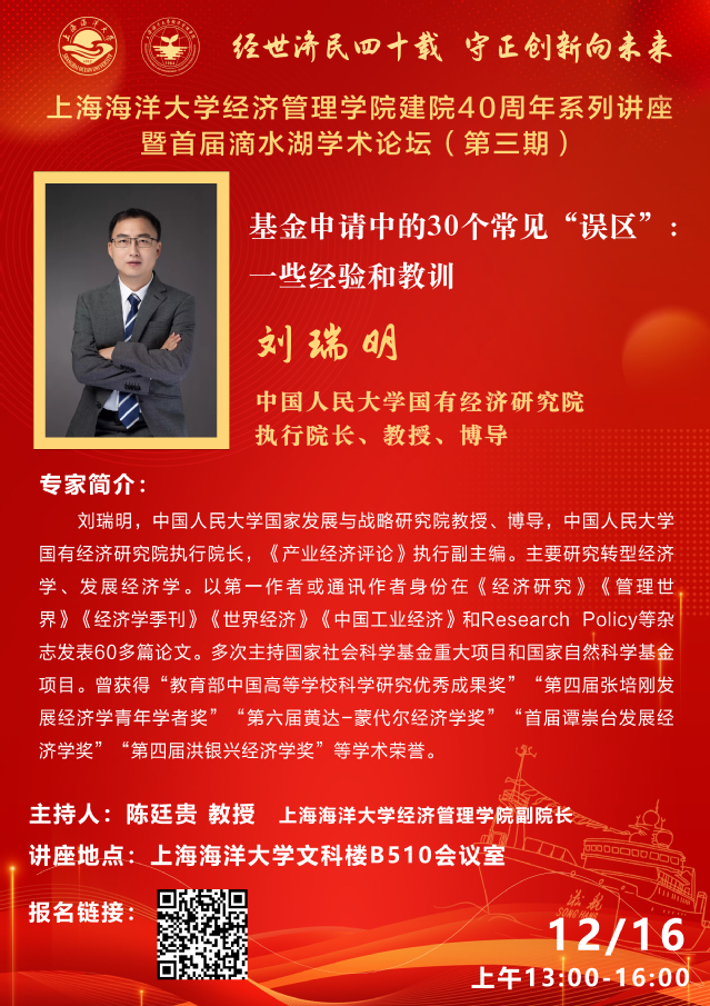 滴水湖学术论坛(第三期)丨刘瑞明:基金申请中的30个常见“误区”:一些经验和教训