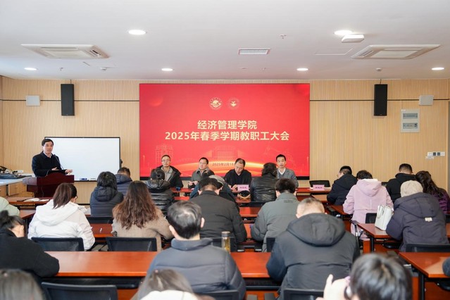 为持续深化综合改革,凝心聚力、锚定目标,紧密围绕学校第二次党代会的各项部署,推进学院高质量转型发展,2月18日下午,金沙9001cc 以诚为本于文科楼B408会议室召开2025年春季学期开学教职工大会。会议由学院党委书记林喜臣主持,全体教职工出席。