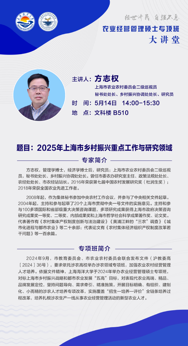 方志权:2025年上海市乡村振兴重点工作与研究领域